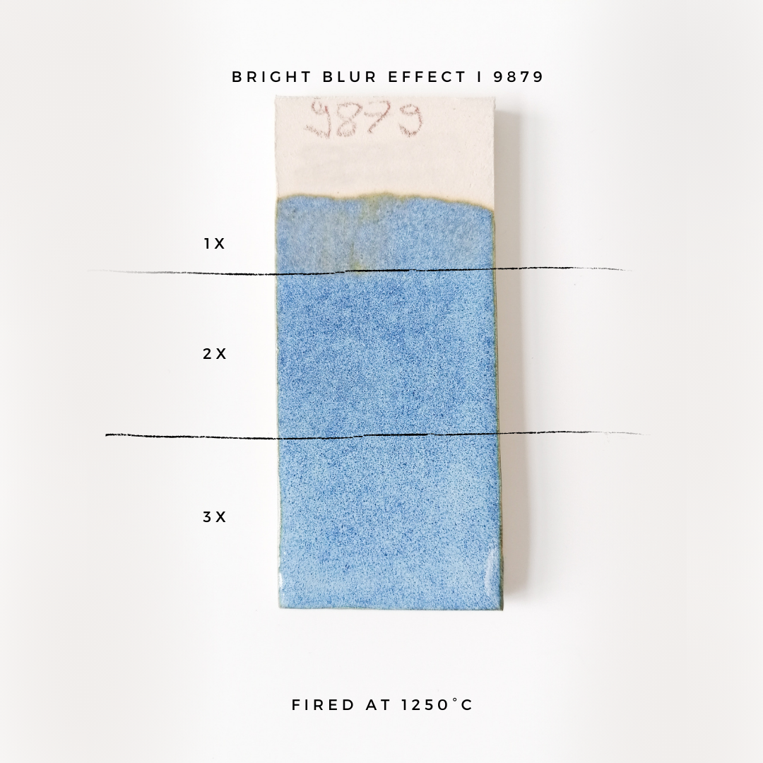 9879 Lys Blå m. effekt er en glansfuld skyblå stentøjsglasur med effekter. Glasuren giver et naturligt udtryk, der varierer smukt med brændingstemperaturen. Den er let at arbejde med og egner sig til både dekoration og større flader på stentøj.
