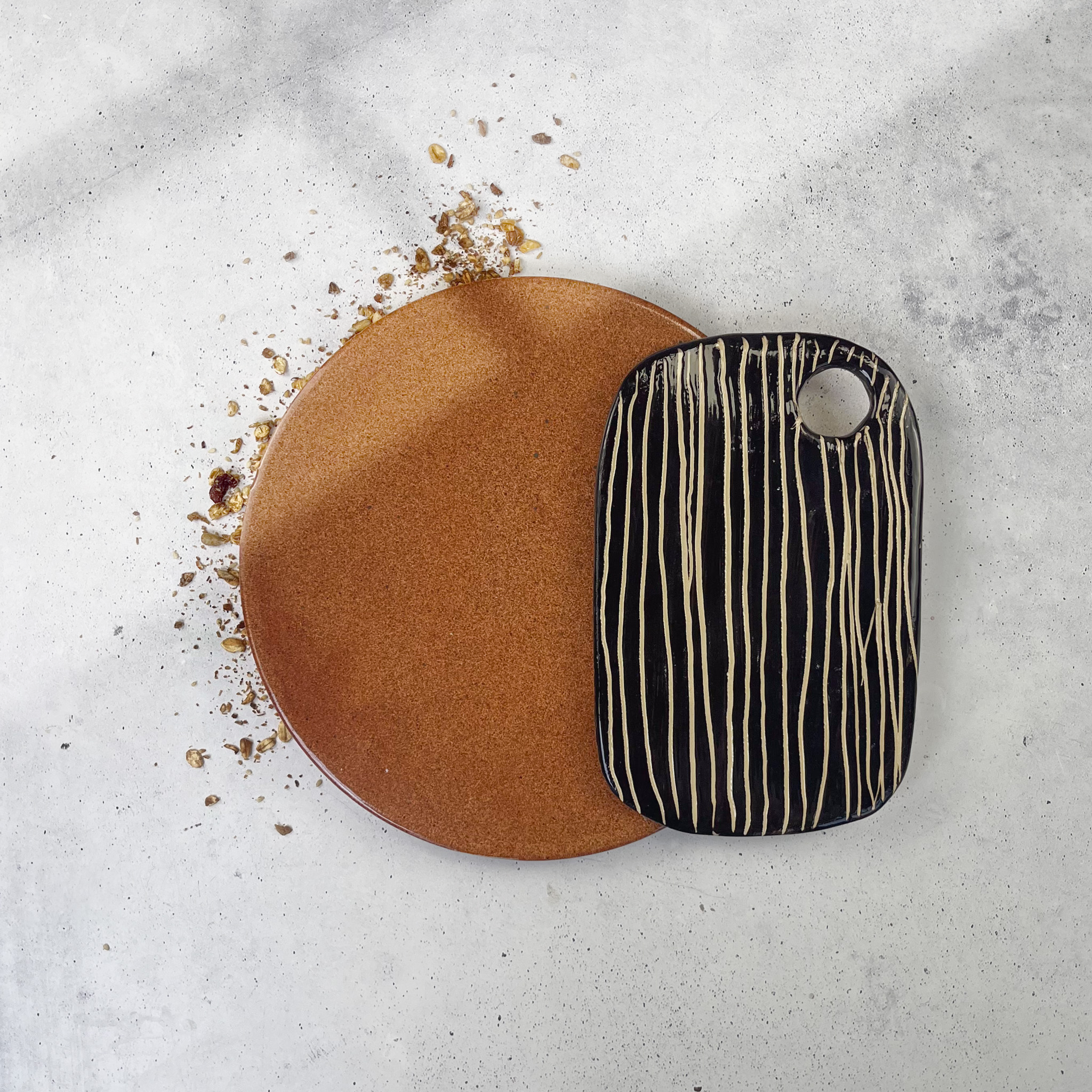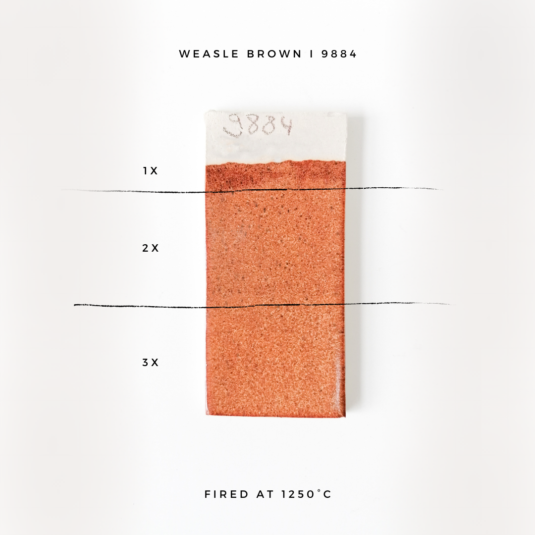 9884 Brun Stentøj er en glansfuld, dækkende og rødlig brun stentøjsglasur med lysere og mørkere effekter. Den er let at arbejde med og egner sig til både dekoration og større flader på stentøj.
