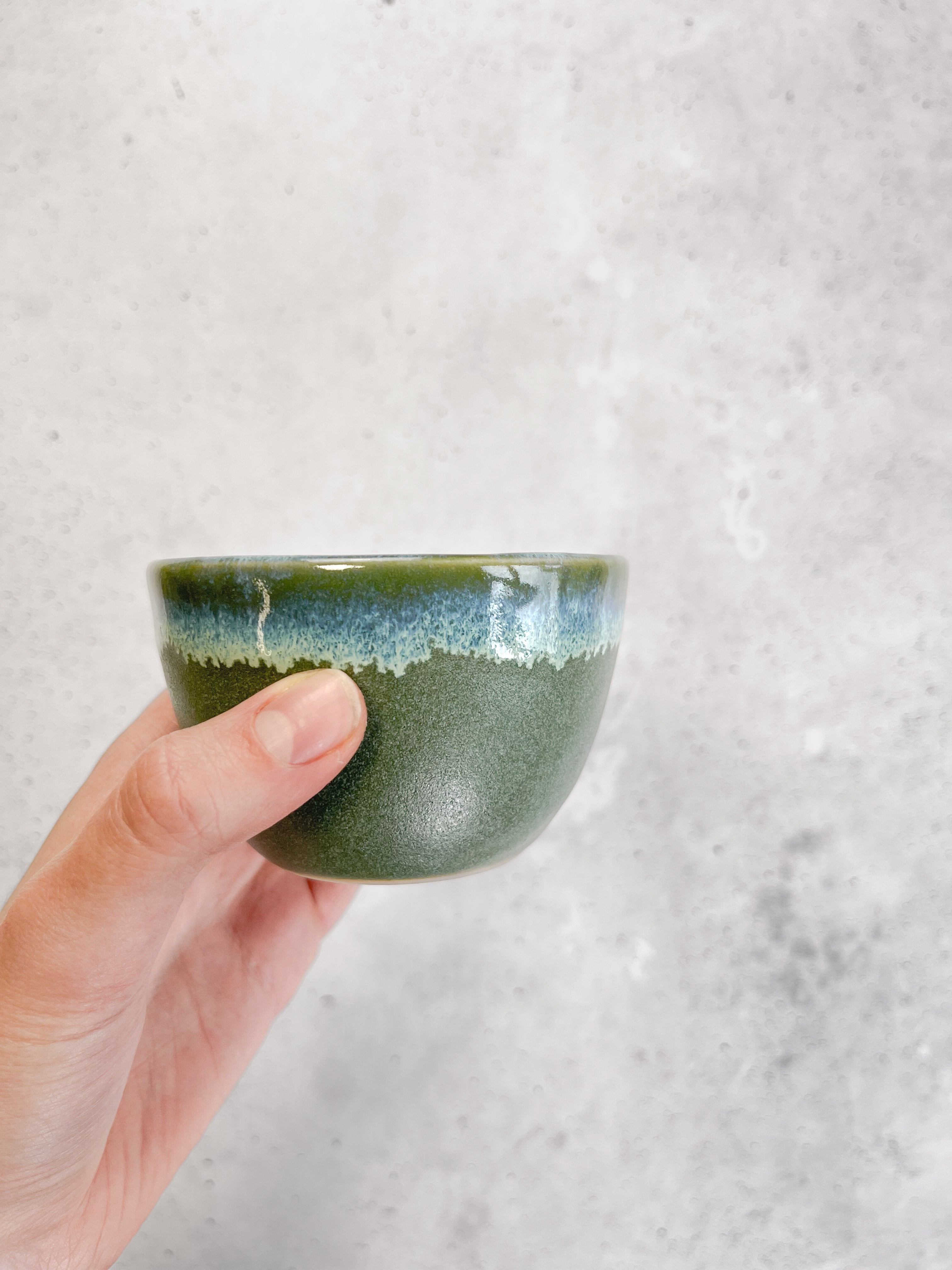 - 1280°C: Satinglansfuld grøn, hvor man her kan opnå løbeeffekter i glasuren ved at påføre tykkere lag nogle steder på emnet.