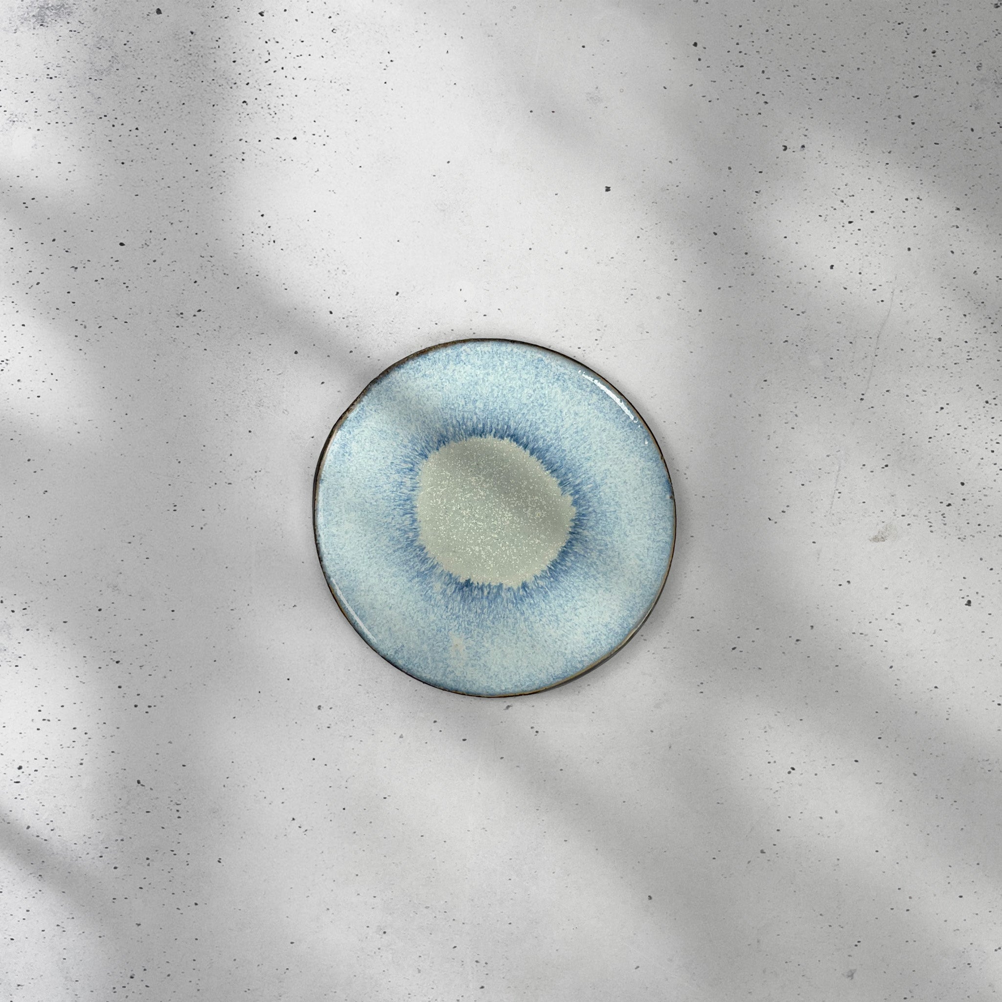 9898 Iskrystal er en silkemat og cremefarvet stentøjsglasur med blålige aftegninger, som træder frem, når glasuren brændes højere end 1250°C. Glasuren giver et naturligt udtryk, der varierer smukt med brændingstemperaturen. Den er let at arbejde med og egner sig til både dekoration og større flader på stentøj.