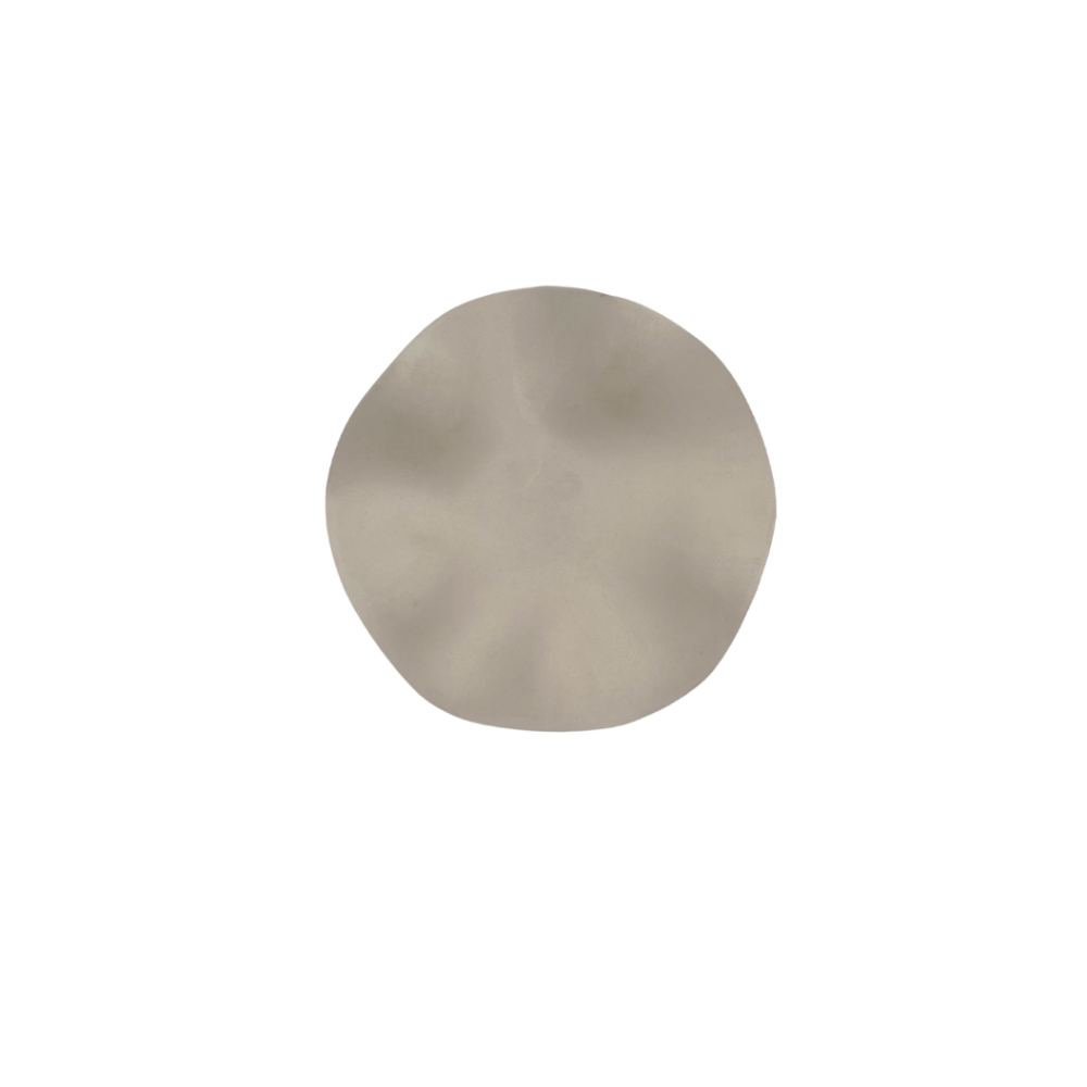 Denne keramiske form Ø14 cm anvendes til slumping, hvor glasset placeres oven på formen og ved brænding synker ned og antager formens blomsterfacade.
