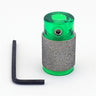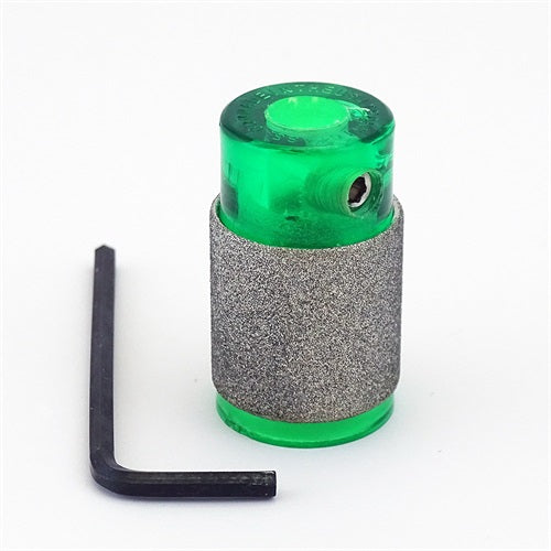 Den farvede del af slibehovedet er lavet af et materiale, som absorberer stød og modvirker at glasset splintrer.