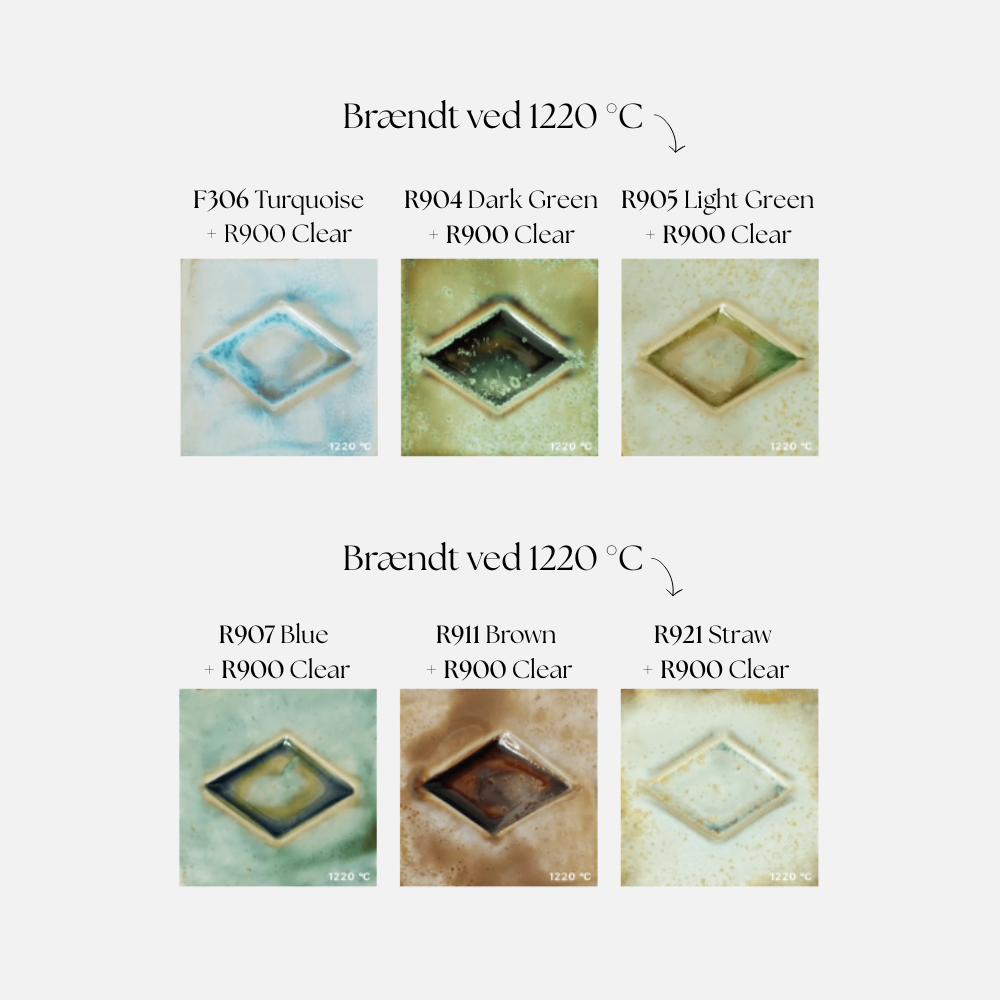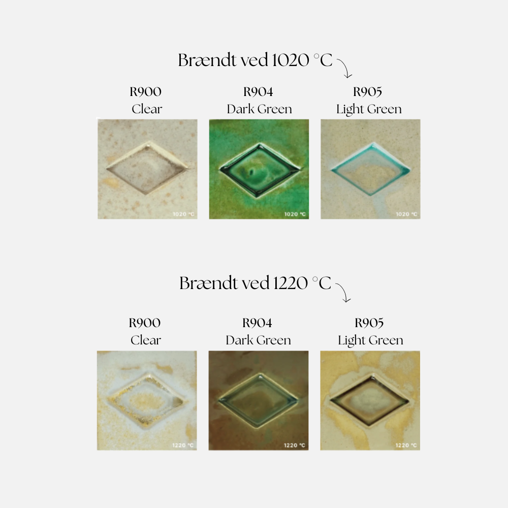 - Brænding: Cone 06-9, ca. 1000-1280°C.
